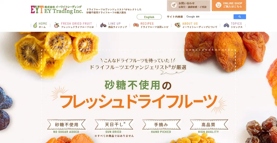 アメリカ産を中心とした、良質なフレッシュドライフルーツを輸入・販売されている