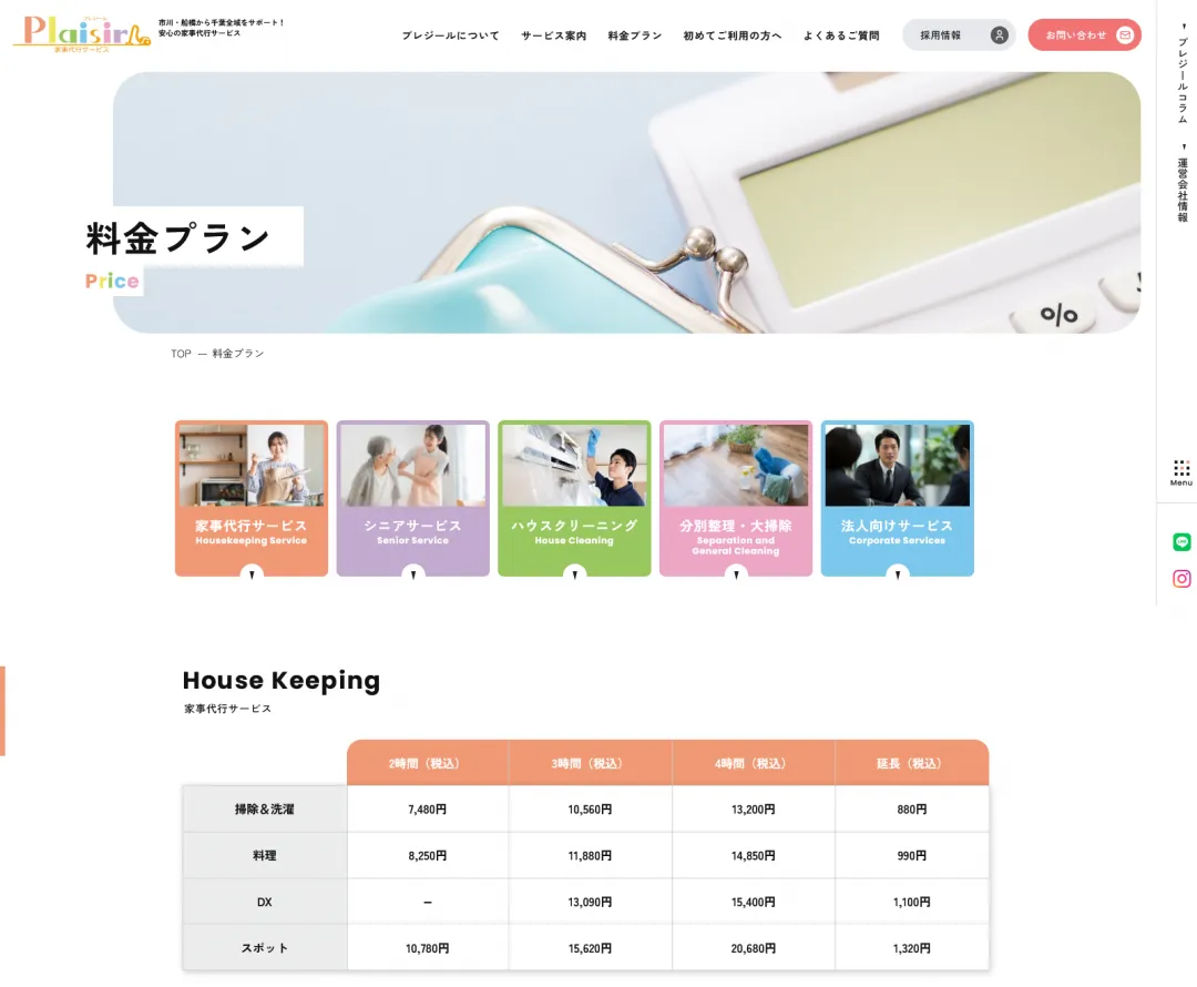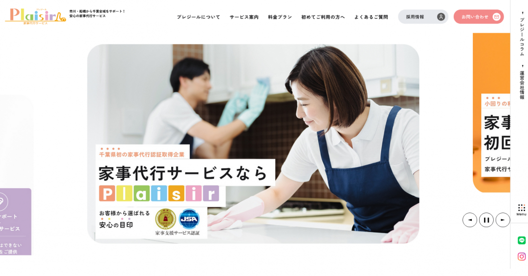 千葉県を中心に家事代行サービスを展開されている、プレジール様の事例です。